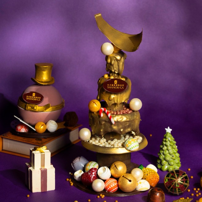 台北遠東香格里拉以巧克力冒險工廠音樂劇為靈感 獨家推出聖誕巧克力系列,特別設計「聖誕許願池」與「巧克力魔法帽」等甜點,讓味蕾也能參與這場魔幻冒險!