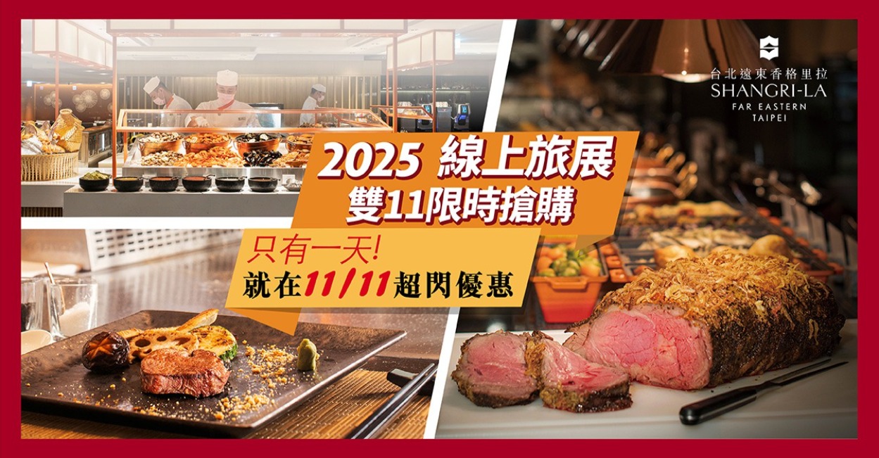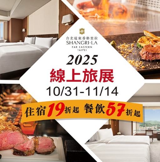 年度最大旅遊盛事即將開跑!台北遠東香格里拉今年活動將推出線上旅展與線下的實體展,趕快把日期標記起來!「豪華客房雙人平日住宿含兩客早餐」下殺19折,僅需5,199元;遠東Café自助餐「週六、週日下午茶十客組」約享7折,準備搶購!