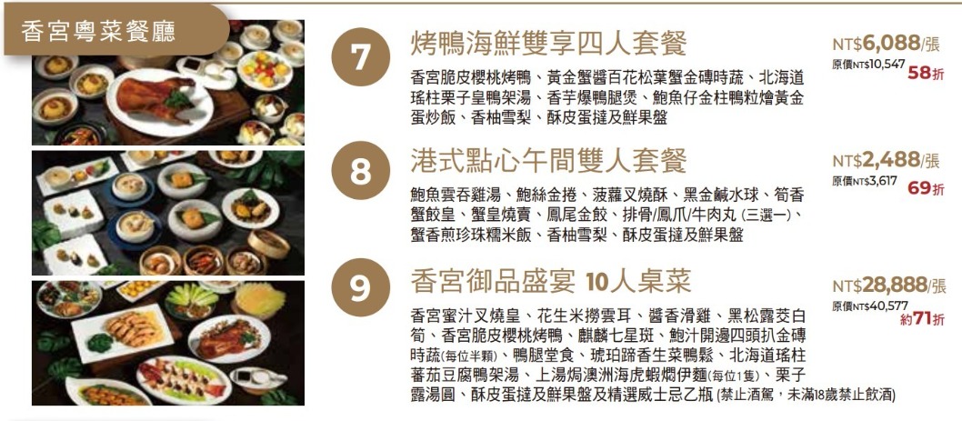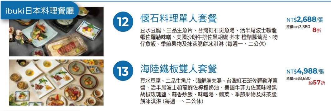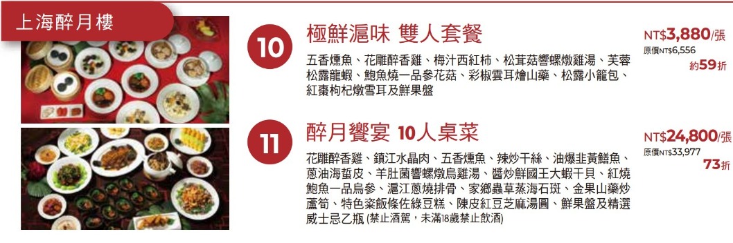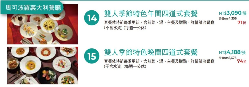 - 餐券優惠期間至2026/6/30止;若逾優惠期或於特殊節日(2025/12/24、12/31、2026/1/1、2/14、2/16-19、5/9-10、6/19)使用或未依優惠方案使用等,則可依券面購買金額於該廳折抵消費。