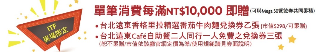 - 健身俱樂部旅展優惠券全商品優惠期間至2026年3月31日;皆為平日使用,逾優惠期或未依優惠方案使用,則依券面購買金額折抵健身俱樂部設施使用入場費。所有消費恕無法累積香格里拉會積分。