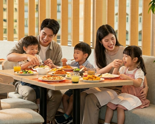 親子食光,遠東Café 陪你寵愛寶貝!兩位成人攜伴11歲(含)以下孩童用餐,孩童可享免費用餐,享受更歡樂的親子家庭時光。週一到週三晚餐不再煩惱要煮什麼,直接帶孩子來吃五星級 Buffet,最高享 4 位孩童免費,在遠東Café 享受一場無負擔的美食饗宴!
