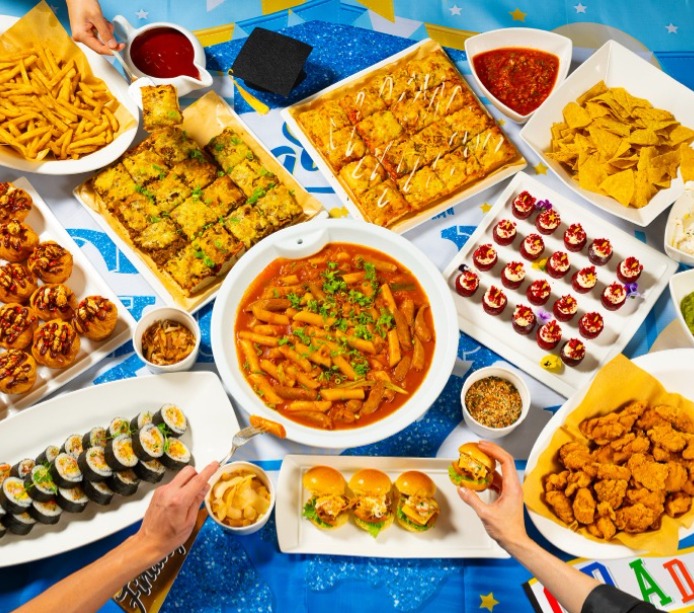 將最熱門的韓流食尚搬進五星級宴會廳!台北遠東香格里拉為畢業生打造最精彩的謝師宴,現場除了提供超過 15 道精緻自助美饌,更由主廚坐鎮現點現做攤位,推出創意十足的「髒髒炸薯條」與「嫩烤豬肋漢堡」!